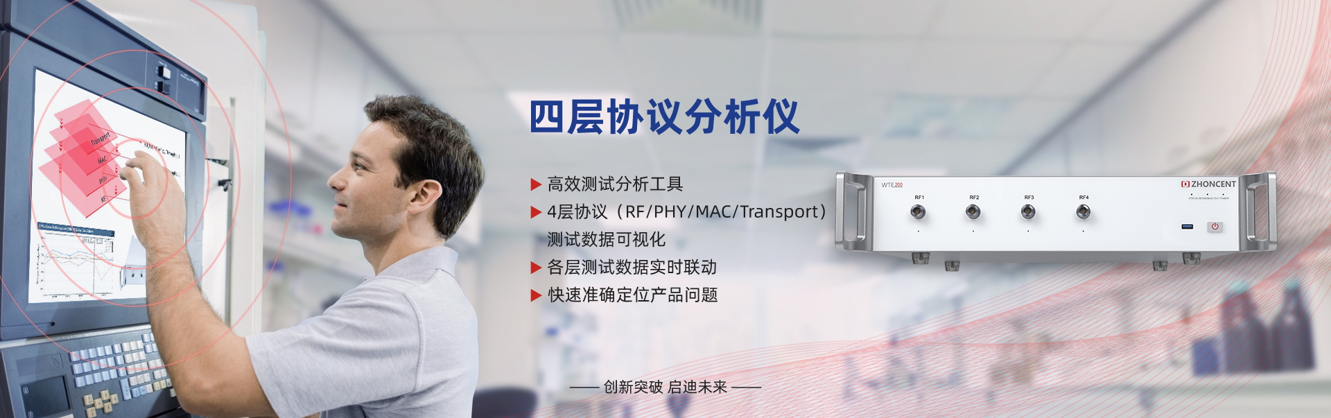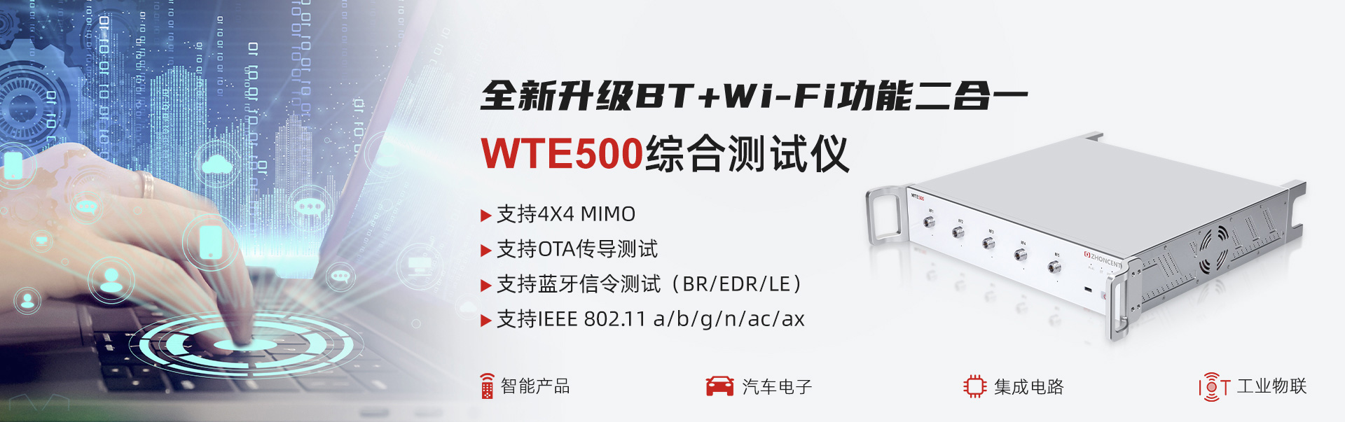 WTE800無線信令綜合測試儀(以下簡稱“WTE800”)是由深圳市中承科技有限公司自主研發(fā)和生產(chǎn),可用于Wi-Fi設(shè)備在研發(fā)、生產(chǎn)、認(rèn)證等環(huán)節(jié)測試的多功能綜合測試儀,通過配置客戶端或AP端參數(shù),真實(shí)建立Wi-Fi網(wǎng)絡(luò)呼叫連接,自動(dòng)實(shí)現(xiàn)被測件的各項(xiàng)射頻與協(xié)議性能指標(biāo)精準(zhǔn)測試。